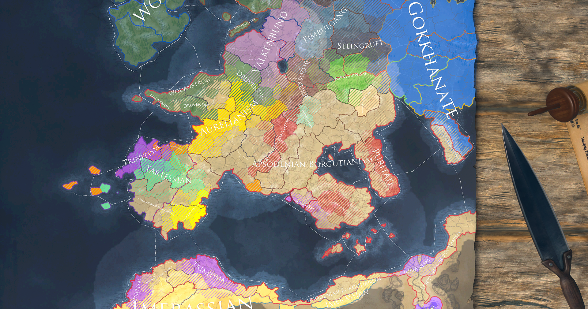 Hypocritically it was this more pacifist sect that took over Borgutius’s legacy: with him and his followers dead a new religion came into being, one that believed in submission before God and a natural order ruled by the nobility, with a strict and regimented social system. Naturally this appealed to the patrician class, most of whom converted over the next three hundred years. It took longer for this religion to reach the commoners - even in 784 only half the Empire’s population is made up of followers of Apsodenian Borgutianism.