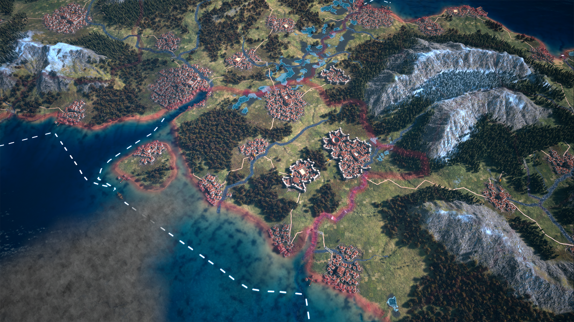 The world of Fall of an Empire is divided chiefly into two parts: the northern continent Cassa, and the southern continent Sattaria. These lands and the central sea are dominated by the ancient Rephsian Empire, founded a thousand years before the game’s start. Centred on the eternal city of Rephsis, the Empire expanded over the centuries to become the greatest civilisation the world has ever known. The imperial language and culture has dominated the two continents.
